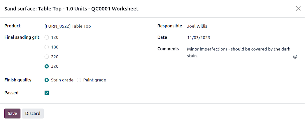 Crea hojas de trabajo interactivas para que los empleados las completen al realizar controles de calidad.
