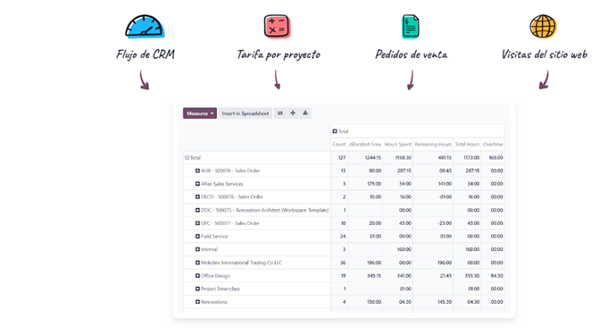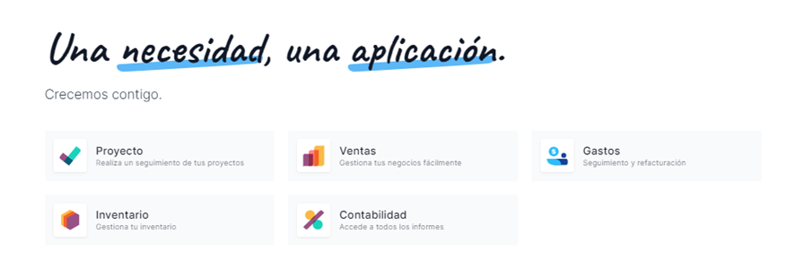 Aplicaciones integradas: Integra funciones de seguimiento de proyectos, gestión de ventas, gastos, inventario y contabilidad.
