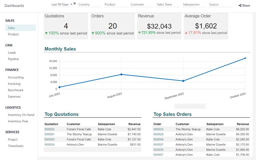 Las herramientas de inteligencia empresarial de Odoo ayudan a que tu negocio crezca. Con ellas podrás obtener información valiosa sobre tus finanzas y elaborar planes increíbles.