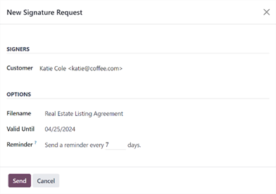 Odoo Firma electrónica te permite enviar, firmar y aprobar documentos en línea. Simplifica todos tus procesos de tu negocio.