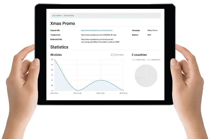 Nos encargamos de acortar los enlaces para limitar el tamaño de los SMS, pero eso no es todo: los rastreadores de enlaces están integrados de forma predeterminada para monitorear la tasa de clics y medir los ingresos que genera tu campaña de SMS.