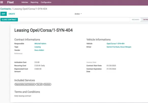 No necesitarás ningún sistema de seguimiento especializado para los vehículos de la empresa, la aplicación inteligente de Odoo te permitirá monitorear tu flota con solo algunos clics.