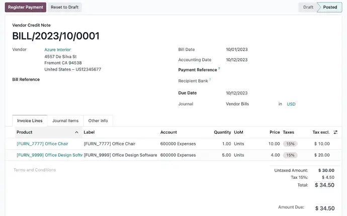 - Adaptación automática a requisitos fiscales: Odoo se adapta automáticamente a las tasas de impuesto y cuentas correctas según la posición fiscal del país del usuario.