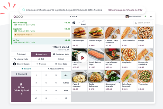 La aplicación Punto de Venta de Odoo es la solución perfecta para proporcionar un servicio de alta calidad en cualquier tipo de restaurante, desde camiones de comida hasta bares de coctelería.