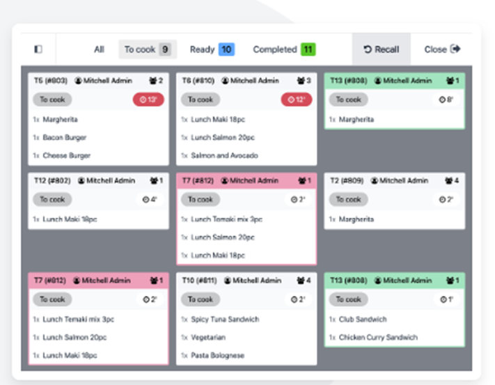 La pantalla de preparación de Odoo permite que tu personal sepa exactamente qué pedidos preparar y en qué momento, gracias a la posibilidad de crear varias pantallas para la cocina y el bar. Esto asegura un excelente servicio, cualquier día y a cualquier hora.